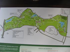 ボタニックガーデンは、オーチャード通を西の方に進んでいったところにあります。しかし、オーチャード通は。。。何と東行きの一方通行。これでは、バスに乗ってもたどり着けそうにない。おそらく、近くの西向きの一方通行の通りがあって、そこをバスが走っているのだろうと想像はしてみたものの、暗くなるまであと1時間しかない状況では、もういいやって感じで、タクシーに乗ってしまいました。距離的には4~5kmと思いますが、支払った額は数百円相当ではなかったかと思います。日本の初乗り運賃にも満たない?(帰りはオーチャード通を走るバスに乗りました。わずか90セント。70円くらい?)さて、そのボタニックガーデン。園内案内図。広いです。夕暮れ時なれど、歩いていると汗がじとっと出てきます。さすがは常夏の国。町がきれいで快適そうなんだけれども、やはり蒸し暑い。大きな木です。幹の左側に見えている縦長の小さなもの、何か分かります?人です。しかも大人です。花。日本の花とはやはり違います。園内にあるオーキッドガーデンの入り口。ラン園。ここに入るのは有料。ぜひ入りたかったが、入場は6時まで。。入れば7時までは観賞できる。よく見ればガイドブックにも時間は書かれている。翌日以降は仕事なので、6時までにここにたどり着くことは不可能だろう。。。またいずれかの機会にということになりました園内の様子を数枚。南国の松。冬の寒さを経験しないためか、松らしくない松ですね。さて、日もかなり暮れてきましたし、長旅の疲れも出てきたところで、引き上げることにしました。ホテルに帰る前に、オーチャード通へ出て夕食をとることにしました。(つづく)