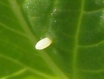 ベランダにモンシロチョウが飛来・・・ん?いやな予感・・・あ、やっぱり・・・卵産んでました。よーく見るとなんと全部で6個。危ない危ない。よかった~見つけて。