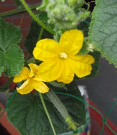 5月8日のゴーヤの日に普通のゴーヤと「白ゴーヤ」の種を蒔いたけど蒔いた途端に寒くなり、結局発芽せず。1月後の6月8日に再度種蒔き。またもや低温・・・1つだけがんばりました。そして初花。三度白ゴーヤの種を蒔きました。今度ダメだったらあきらめましょう・・・