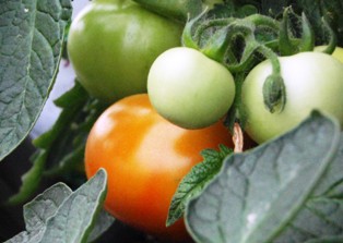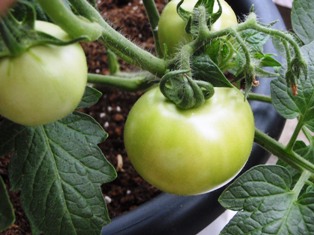 トマトが色づいてきました。(・・)向かいのマンションの上からカラスが狙っているように感じるのは気のせいでしょうか・・・今まで一度も被害にあったことはないんですが・・・