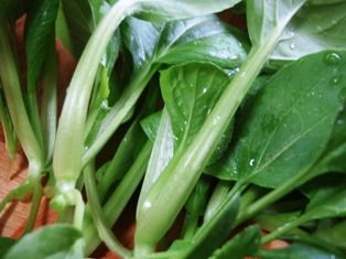 青梗菜、ホウレンソウが順調に育ち、窮屈になってきたので大間引き大会開催! 間引きで十分の量だなあ。いただきまーす!