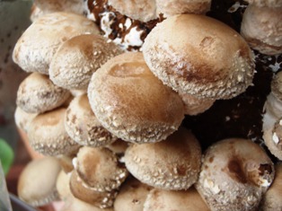 ベランダでしいたけやってみようっと・・・3日でこんなんなりました。さらに6日でこんなに。凄い生長速度。ぎゅうぎゅうになっているので、間引きしないと・・・20個ほど収穫。焼しいたけ♪