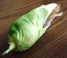 とうもろこしの様子がへんだなあ~って思っていたら、ついに枯れてしまった。順調だと思っていたんだけどなあ~1株に3個、計6この実がついていたんだけど、ヤングコーンどまり。1個だけこんな感じ。だけど、中身はこれ。したの方だけちゃんとした実になり、上はヤングコーンのまま。なんかフキノトウみたい。でも食べました。こんなんでも甘くて美味しかったです。多分、ジャガイモを収穫したあとろくに肥料も与えず、放置していたのがいけなかったんだな。多分・・・