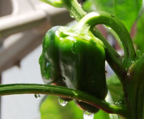 アブラーがびっしり・・・去年はぜんぜん大丈夫だったのに、今年はなす、ピーマンにビッシリ・・・毎日退治しているんだけど。。。もういやんなってきた。そんな中、ピーマン1個大きくなってきました。