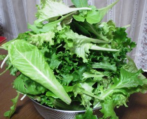ベランダのレタスミックスたちはやたらと元気です。プランターの中で所狭しと生い茂り、ジャングルと化してきました。間引きを兼ねて収穫。さて、何して食べよう・・・そうだ!タコライスにしよう~っと。