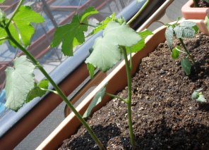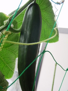 去年失敗したキュウリ。今回は「うどんこつよし」11日にはこんくらい。やっとネットに手が届き、精一杯背のび。もうこんなに大きくなり、1mを超えた。ちびキュウもつきました。ちゃんと生るかな?