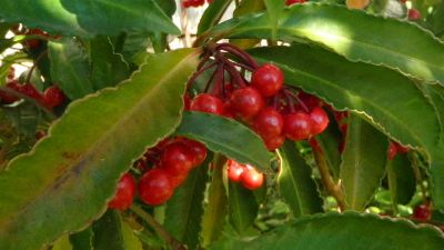 万両千両は活け花に使うが万両はどうだろう。一、十、百、千、万と万の方が位が多いのに、万両が活けてあるのにであったことがない。しかしよく見ると万両は千両より実が大きく沢山ついている。しかも実が赤いところが良い。 万両の実の赤ければそれもよし クリックしてね ↓ 人気ブログランキングへ 俳句・冬・植物、万両