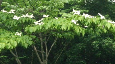 山法師の花本州以西の山地に自生し、高さ5~10メートルになる。白い四枚の花びらに見えるのは苞(ほう)で、その真ん中に小さく緑黄色の頭状か花をつける。清楚な感じで、つい仰いでしまう。 咲きいでて雲に近づく山法師 クリックしてね ↓ 人気ブログランキングへ 俳句・夏・植物、山法師の花