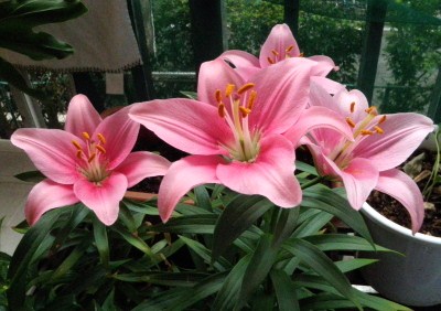 百合Nさんから頂いた百合が咲いた。植木鉢のままベランダに置いてあったのが、冬を越しこの季節に合わせて咲いた百合の花。明るい色にNさんの微笑みが見える。 鉢植の百合に水遣り怠らず クリックしてね ↓ 人気ブログランキングへ 俳句・夏・植物、百合・百合の花