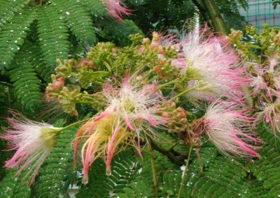 合歓の花とある小学校に用があり、校庭を散策した。昨日が夏至で、今日は梅雨のまっただ中である。お誂え向きに校舎の脇に合歓が咲いていた。合歓は夜になると葉を折りたたんで垂れるので眠ったように見える。花は紅刷毛に似て夢のように美しい。〈象潟や雨に西施がねぶの花 芭蕉〉の句がすぐに浮かんだ。生徒の一人がねむの花の句を詠んだ。 合歓咲いて少年少女耀(かがや)けり クリックしてね ↓ 人気ブログランキングへ 俳句・夏・植物、合歓の花・ねぶの花