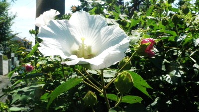 酔芙蓉散歩の途中あちこちで芙蓉の花が咲いている。花の形は木槿に似ているが、質感は木槿とは違って絹のような光沢があり高貴な感じがする。芙蓉の中でも朝は白く時間が経つにつれて紅色を濃くしていく花を酔芙蓉という。日当たりが良いところでは午後3時頃には紅く染まっている。その花が夕べに落ちずにこの写真のように朝まで残っていることもある。私はこの頃二日酔いすることもなく、芙蓉の花を見ながら散歩の足取りが軽くなる。 二日酔せずになりけり酔芙蓉 クリックしてね ↓ 人気ブログランキングへ 俳句・秋・植物、酔芙蓉・芙蓉