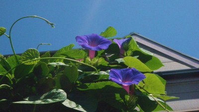 ヘブンリーブルーヘブンリーブルーは西洋朝顔のこと。我が家の朝顔と比べると繁殖力旺盛で2階の屋根まで咲き上っている。花の色も深い藍色。日当たりの中萎まずに咲き続けている。 ヘブンリーブルーは強し日を撥ねて クリックしてね ↓ 人気ブログランキングへ 我が家の朝顔 俳句・秋・植物、ヘブンリーブルー
