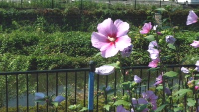 木槿野川沿いには様々な色の木槿が咲いている。真っ白もいいが、薄紅色の花も華やかでいい。この木槿は花の底が紅色に染まっている。野川の風景が一段と明るく見える。歩く傍を数羽の雀がのんびり飛び交っている。 底紅の花の薄紅雀飛び クリックしてね ↓ 人気ブログランキングへ 俳句・秋・植物、木槿