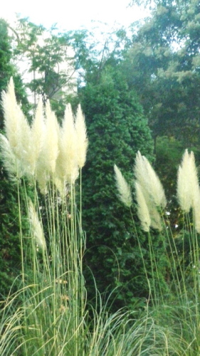 パンパスグラス(シロガネヨシ)神代植物公園のパンパスグラスは有名である。此は近くのマンションの入り口にある。パンパスグラスは別名白銀葭(シロガネヨシ)とも呼ぶ。この丈の高さと、ふさふさした花が風に吹かれると大きく揺れる。日が当たると白銀に耀く。 日を浴びて白銀葭の揺れてをり クリックしてね ↓ 人気ブログランキングへ 俳句・秋・植物、パンパスグラス・白銀葭