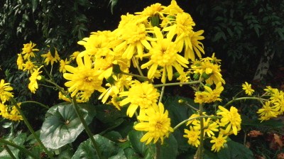 石蕗の花キク科の常緑多年草。フキとは別属。暖地の海辺に自生するが、観賞用に栽培されている。若い葉は食べられる。葉は腫れ物・湿疹などの薬用になる。古い庭園に咲いていた。石蕗の花は遠くからもでも目立ち、しかも美しかった。 花石蕗の似合ふ庭園巡り来し クリックしてね ↓ 人気ブログランキングへ 俳句・冬・植物、石蕗の花