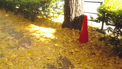 公孫樹(いてう)落葉神田川に架かっている聖橋を渡ると左手に日本医科歯科大学ある。公孫樹並木が未だ裸木になっていないので、風が吹く度に公孫樹の葉が散る。人通りが多いのでその落葉は踏まれて粉々に砕けていた。砕けてはいるが、辺りは黄金のジュータンのように威厳が感じられた。 胸張りていてう落葉を踏みゆけり クリックしてね ↓ 人気ブログランキングへ 俳句・冬・植物、公孫樹落葉