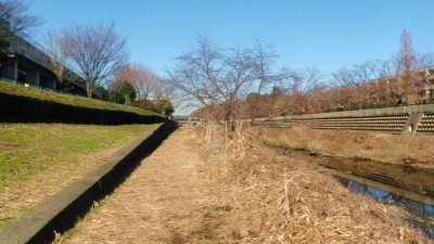 枯堤 かわせみ青空の下、野川が流れている。毎日見ているので昨日と比べてそれほど変わったとは思わないが、晩秋の景色と比べるとはっきりと違いが判る。堤はこれほどまでに枯れきってしまった。また土手もすっかり枯れきってしまった。その土手にかわせみが赤腹を見せて止まっている。水面にもまたそのかわせみの赤腹が映っている。のんびりした風景が良い。 目の前を歩く人なし枯堤 クリックしてね ↓ 人気ブログランキングへ 俳句・冬・地理、枯堤(かれつつみ)、野川