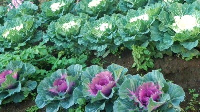 葉牡丹アブラナ科の多年草。キャベツの一種で鑑賞用。葉の色は白・紫紅など。牡丹の花のように美しい。正月の装飾としてつかわれる。午後葉牡丹畑の脇を通った、午前中降っていた雨が上がり、葉牡丹のところどころに雨粒が残り、折からの弱日に雨粒が光り一層美しく見えた。 燦めけり葉牡丹畑の雨の粒 クリックしてね ↓ 人気ブログランキングへ 俳句・冬・植物、葉牡丹・葉牡丹畑