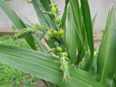 神明の杜から出る湧き水が小流れになり野川へ流れ込んでいる。その 小川の数珠玉はまだ花をつけているものもあり、実を結んでいるもの もある。今日は朝から用があり一日中外出していた。帰って野川を見 てみると水嵩を増し濁流と化していた。 数珠玉に雨野川にも雨激し クリックしてね ↓ 人気ブログランキングへ 俳句・秋・植物、数珠玉、野川