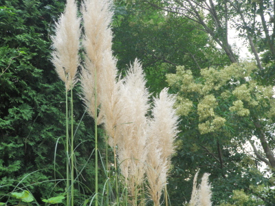 パンパスグラス、歳時記には載っていないが、秋になると芒に似た長 い花茎を直立し円錐花序をつける。別名シロガネヨシという。秋の日 差しを受け銀色に輝く。 丈高きパンパスグラス秋日濃し クリックしてね ↓ 人気ブログランキングへ 俳句・秋・天文、秋日、パンパスグラス・シロガネヨシ
