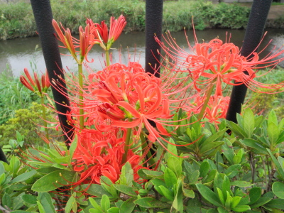 野川沿いは今曼珠沙華の盛りを迎えている。野川の右岸左岸や遊歩道 の脇にも曼珠沙華が真っ赤に 燃えている。今年は例年に比べて花数 が多い。空の青と草の緑と曼珠沙華の赤のコントラストを愉しみたい が、このところ青空が見られないのが残念だ。別名、彼岸花、死人花 とも呼ぶ。 叢がりて悲しみ増せり曼珠沙華 クリックしてね ↓ 人気ブログランキングへ 俳句・秋・植物、曼珠沙華・彼岸花、野川