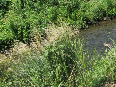 私がいつも散歩する野川には葦ばかりで薄がないのが残念、と思って いたところ今日薄を見つけた。句会場(今は耐震工事中)である谷戸 橋地区センターの辺りに薄が揺れていた。きっと上流から根ごと流れ てきたのが根付いたのだろう。嬉しい限りである。 水流の狭きところに薄かな クリックしてね ↓ 人気ブログランキングへ 俳句・秋・植物、薄