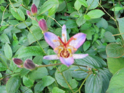 ユリ科の多年草。秋、白色に紫色の斑点の散在する花を開く。花の模 様がホトトギスの腹の斑紋に似るため杜鵑草の名がある。 花言葉は 「秘められた恋」。 ひつそりと咲きし日数や杜鵑草 クリックしてね ↓ 人気ブログランキングへ 俳句・秋・植物、杜鵑草