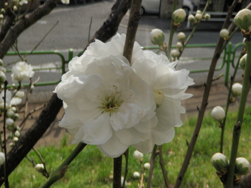 梅の花に続き桜の花ももう散りかかっている。が、しかしまだまだ春の楽しみが続く。 今紅白の花桃が垣根を彩っている。この花を見る度に花びらが紙で造られているよう に思う。それほど花びらが薄いということかも知れないと思っている。 花桃のはきはき咲いて雲寄せず クリックしてね ↓ 人気ブログランキングへ 俳句・春・植物、花桃