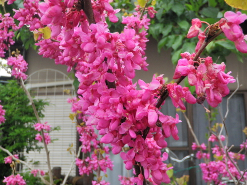 窓の粗とが日差しを受けて明るい。なんとなく眠気がするので、外へ出てみることに 。 通りがかりの家の庭に紫荊(はなずおう)が咲いていた。花の色が蘇芳染めの色に似 ているのでこの名があるようだ。葉に先だって枝の節々に紅紫色で小形の蝶形花が固 まって咲く。 紫荊眠気すつかり覚めにけり クリックしてね ↓ 人気ブログランキングへ 俳句・春・植物、紫荊(はなずはう)