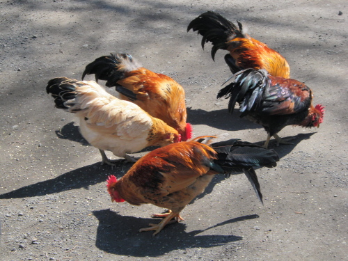 とうとう雨になり四月なのに一段と寒くなりました。写真はJR南武線谷保(やほ) 駅下車3分のところにある谷保天神の風景です。この頃見かけない鶏が境内に放し飼 いにしてありました。この種は矮鶏だそうです。近所の老女が餌をばらまいていまし た。矮鶏は春の日射しを受けのんびりと忙しげに餌を啄んでいました。 餌を食ふ矮鶏の鶏冠に春日かな クリックしてね ↓ 人気ブログランキングへ 俳句・春・天文、春日・春の日、谷保天神