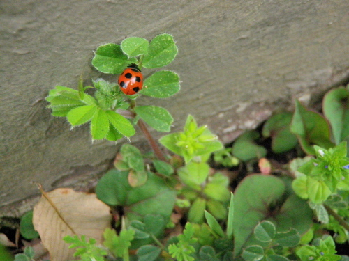 もうそろそろ天道虫がいる頃と思い、キョロキョロと叢を見ながら進んで行くと、や っとのことで一匹の天道虫を見付けた。赤地に黒紋が七つあるので、ナナホシテント ムシである。その後黒地に赤紋が二つあるフタホシテントウムシを見付けたがデジカ メを近づけ過ぎて逃げられてしまった。 まう出でて見目好き春のてんと虫 クリックしてね ↓ 人気ブログランキングへ 俳句・春・動物、天道虫・ナナホシテントウ・フタホシテントウ