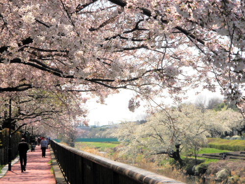 野川の北岸です。花のトンネルの中に遊歩道があり、自転車も通れる。前に見える青 い橋は神明橋です。野川の南岸も北岸も桜が満開です。今日は曇って風もあり、もう 花びらが散っています。散歩していても知り合いに出合うことがないのが良い。 花曇歩け歩けと歩きけり クリックしてね ↓ 人気ブログランキングへ 俳句・春・天文、花曇・花ぐもり、野川