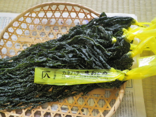 昨日筍を買って、鳴門の若布も買った話をしたが、その夜夫が「お~い若布を貰った ぞ」と帰宅した。えっ、一日早ければ良かったのにと思わず言ってしまった。ごめん なさい。 山陰のわかめは日本海の淀江町の若布でとても珍しい。このまま手でちぎってビール のおつまみにする。若い頃鳥取に暮らしていたので懐かしい。思いがけず御馳走にあ りつている。 若布食べ明日の鋭気を養へり クリックしてね ↓ 人気ブログランキングへ 俳句・春・植物、若布、板わかめ