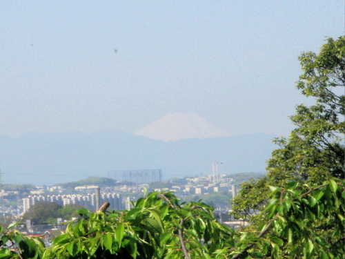 朝から快晴で気温も五月中旬なみということで、これなら富士山が見えると出掛けた。 9時半頃いつもの国分寺崖線から撮ったもの。快晴ではあったが、遠くは薄霞がかか り冬のようにくっきりとはいかなかったが雲一つない山容はしっかり見ることができ た。この時期としては珍しいことである。 薄衣の山容しかと春の富士 クリックしてね ↓ 人気ブログランキングへ 俳句・春・地理、春の富士、春富士