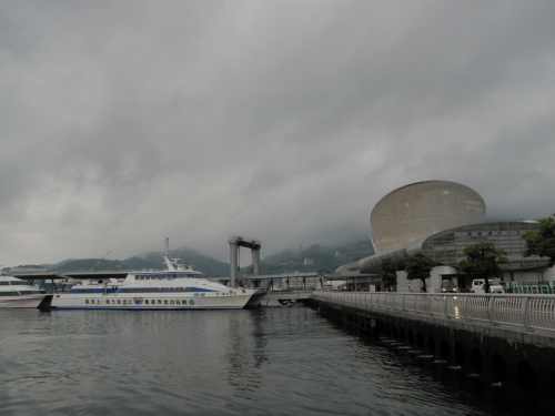 長崎港 長崎港めぐり遊覧船 軍艦島めぐり遊覧船 5月30日長崎港めぐりの乗船を予約していた。ところが当日は雨が激しくて長崎港 めぐりは中止になりますとケータイに電話が入った。長崎での出端をくじかれてしま った。長崎港近くに宿とっていたので、未練たらしく足はしぜんと港へ向かった。遊 覧船の埠頭に数人作業をしている人がいたので、珍しい船の形に思わず問うてみた。 私、この船はどういう船ですか。 A、長崎港めぐりです。 私、えっ、この船に乗るはずでしたのに欠航になりましたね。 A、すみません。 私、いいえ。 長崎の出端を挫く走り梅雨 昨日長崎も梅雨に入った。 クリックしてね ↓ 人気ブログランキングへ 俳句・夏・天文、走り梅雨、長崎港めぐり