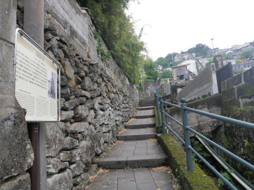 龍馬通り 長崎港 坂本龍馬の像(風頭山頂上) 5月30日、長崎は今日も雨だった。雨の日のことは明日にまわして、31日は晴れ て暑いぐらいになった。 単独行動なので、自由気ままに坂本龍馬の像のある風頭山 (かざがしらやま)に登ることに。どんな山か知っていたらきっと登らなかったであろ う。山と云って山道ではなく石段に継ぐ石段で、何度も息を休め、汗を拭いながらよ うやく頂上にたどり着いた。驚いたことに此の階段は地元の生活の道であり、石段に 沿って家が建っている。家が建っているというよりは山に張り付いているという佇ま いである。よほど足腰が丈夫でないと此処の暮らしは無理だと思った。山頂は五月の 風が清々しく吹き、長崎港(鶴の形をしているので鶴の港とも呼ぶらしい)が一望で きた。 ハンカチや龍馬と眺む鶴港 クリックしてね ↓ 人気ブログランキングへ 俳句・夏・人事、ハンカチ、風頭山(かざがしらやま)、坂本龍馬の像、鶴の港