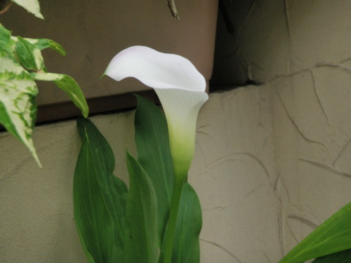 5月ころから咲き始める。もうそろそろ花も終わりであるが、神明の森の南側は日蔭で気温も低く、漸く咲き始めた。 神明の水の恵みの海芋かな クリックしてね ↓ 人気ブログランキングへ 俳句・夏・植物、海芋(かいう)・カラー
