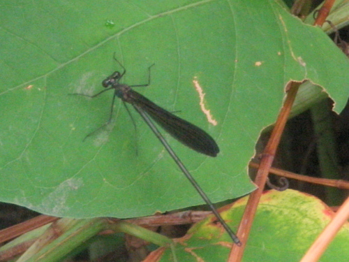 最近野川に草刈りが入っていたので蛇がいないかと思い昨日野川の汀を散策していた。翡翠と鉄漿蜻蛉(おはぐろとんぼ)を見付けたが、残念ながら蛇がいなかったので、谷戸橋から四つ上流の高谷橋までを伸ばした。すると雨がぽつぽつ降り始めたので一目散に駆けて帰った。あわや驟雨にあうところであった。ものすごい勢いの雨脚を見ながら、先ほどの鉄漿蜻蛉はどのように雨を避けているのだろうと思った。 雨激し鉄漿蜻蛉葉に潜れ クリックしてね ↓ 人気ブログランキングへ 俳句・夏・動物、鉄漿蜻蛉、野川