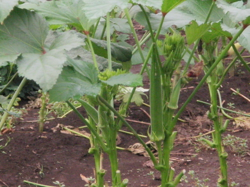 オクラが成っているところをはじめて見ました。オクラは下に向いているとばかり思っていたが、上へ延びるのですね。先日居酒屋でオクラを注文したところ皿に茹でたオクラが並び、マヨネーズが添えてありました。単純すぎて驚きました。私はオクラを茹でずに刻み、納豆と混ぜ合わせるのが好きです。万葉集巻三に「憶良らは 今はまからむ 子泣くらむ それその母も 我を待つらむそ」がありましたね。昔覚えたことは忘れないですね。俳句は駄句ですが・・・。 山上憶良のことをオクラ食べ クリックしてね ↓ 人気ブログランキングへ 俳句・秋・植物、オクラ、山上憶良