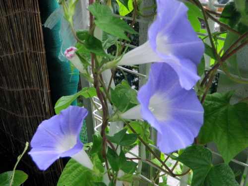 ベランダの朝顔が咲いた。初花である。朝顔が外に向いて咲いたので、柵の外へ手を伸ばし撮ったので何度撮っても構図が決まらず、しかもピンボケとなった。今日は朝からはー君とさーちゃんがくるので、早めの更新です。さあプールやお出かけと忙しくなります。 朝顔や児らを迎へる支度せむ クリックしてね ↓ 人気ブログランキングへ 俳句・秋・植物、朝顔