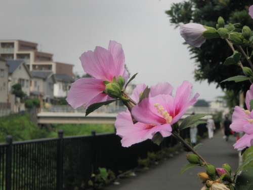 きょうは句会を一つ終えてくつろいでいる。空には雲が湧いているが雨は降りそうになく相変わらず気温が高い。野川沿いの木槿が夏の終わりに咲き始めた。花だけを見ていると涼しげである。 一雨も二雨も欲し花木槿 クリックしてね ↓ 人気ブログランキングへ 俳句・秋・植物、木槿、野川沿い