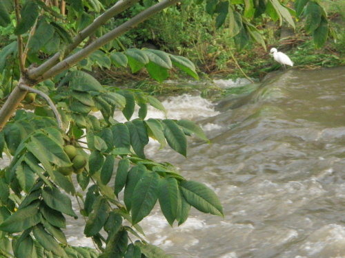 野川の流れは出水の度に少しずつ変化している。越してきた時とは微妙に地形が変わることもさりながら、川沿いの草や木の種類がも微妙に変わっている。草については気がつきにくいが、桑の木や胡桃の木が増えた。この胡桃の木もその一つである。大きな青実が突然生り、胡桃の木と知れる。 青胡桃早瀬が淵となる処 クリックしてね ↓ 人気ブログランキングへ 俳句・夏・植物、青胡桃、野川