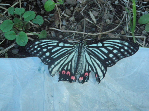 自転車置き場の歩道側に冬蝶がいた。おや、まあ、こんな処に!此処では踏まれると思い落ちていたビニール袋に載せて生垣の中のへ運んだ。すると冬蝶はありがとうと言ったかどうか解らないが羽を開いた。小さな卵から蛹になり冬蝶になるまで危険だらけなのによくぞ羽化したものだとエールを送った。しかし、よく観ると羽が傷んでいるようにも見える。 冬蝶の翅をひろげし眩しさよ クリックしてね ↓ 人気ブログランキングへ 俳句・冬・動物、冬蝶・冬の蝶