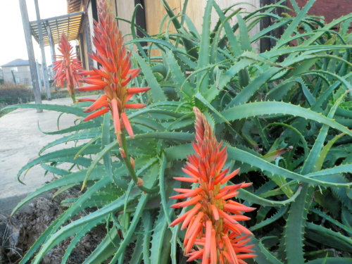 若い頃はアロエの葉を千切り皮を剥いてプルプルしたものを顔に塗ったものでしたが、もうそんなことをしなくなって久しい。各家のアロエがマンションの通路に植え込まれているのを見て、さもあらんと思っている。今やアロエの花が冬の日を浴びてのびのびと力強く咲いている。しかしアロエの花は季語ではない。 咲き登るアロエの花や冬日濃し クリックしてね ↓ 人気ブログランキングへ 俳句・冬・天文、冬日、アロエの花