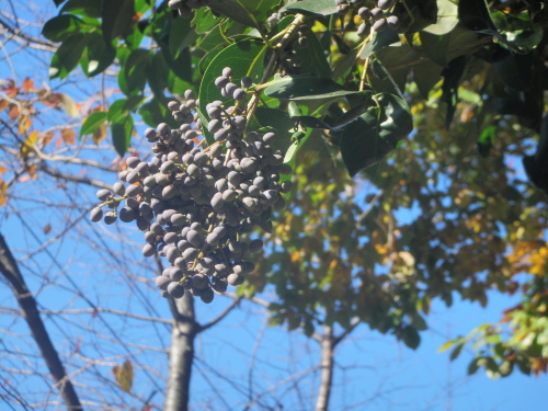 野川の日当たる方を歩いているとお父さん達が犬を連れて歩いているのに出会った。今日は土曜日で天気も上々とあって犬の散歩をかってでたのであろう。本日、野川でであった水鳥は小鷺、軽鴨、青鷺、川鵜、翡翠、小千鳥であった。鴨がいないのが不思議である。冬黄葉の隣に葉が青々として沢山の黒い実をつけている鼠黐の実を見つけた。別名、女貞の実、ねずみのふん、ねずみのこまくらとも言う。 ねずみ黐の実を載せし手を洗ひけり クリックしてね ↓ 人気ブログランキングへ 俳句・冬・植物、鼠黐の実・女貞の実