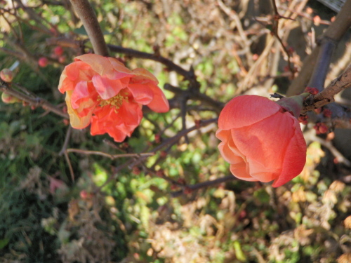 未だすっかり雪が解けたわけではないがまた明日雪がふるそうな。寒いのは大大嫌い。そんな中寒木瓜が花を咲かせている。莟も沢山ついていて暖かい春の到来を待っている。2月4日が立春、あと13日ああ待ち遠しい。 寒木瓜や待つといふは耐ふること クリックしてね ↓ 人気ブログランキングへ 俳句・冬・植物、寒木瓜