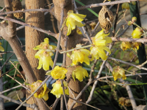 臘梅の臘を虫偏の蠟と書く人がいるが間違いです。臘梅は朧月(陰暦12月の異称)に咲く。葉の出る前に香りの高い小さな黄色い花が数個ずつ集まって咲く。 臘梅や日の宙にある散歩径 クリックしてね ↓ 人気ブログランキングへ 俳句・冬・植物、臘梅(らふばい)