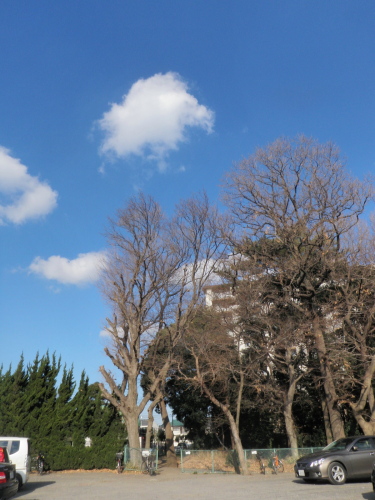 自転車でスーパーへ向け走っていると、鶯の声がした。おや、もう鶯が!冬の鶯で詠むのかしらと思いつつ上空を見回したが声はすれども姿が見えない。30メートル程走ったところで鶯の声がぴたっと止んだ。そこでふと昨日ガラケイからスマホに換えて、主人の着信音をウグイスに設定したことに気付いた。もう一人で笑ったのなんの。写真はテニスコートの向かいの枯木。見事に枯れてしまった。 青空に雲の遊べる枯木かな クリックしてね ↓ 人気ブログランキングへ 俳句・冬・植物、枯木