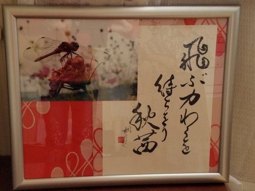私の句<飛ぶ力湧くを待ちをり秋茜 阿弥>がきっこ様の目にとまり「実は地元札幌の作品展へ出展する書道作品に、こちらの俳句を書かせていただきたいのです。」とのことで、その作品の写真が届きました。秋茜の飛ぼうとしている力に相応しい力強い書に感動しているところです。また表装にも秋茜の写真や明るい図柄があしらわれ新進気鋭の作品展であることが窺われます。有り難うございました。きっこ様の許可を得てUPしました。 力強き書を眺めゐる夜長かな クリックしてね ↓ 人気ブログランキングへ 俳句・秋・時候、夜長、きっこ氏書道作品