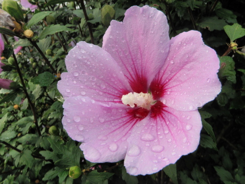 雨の日の木槿は涼しげですね。しかし今日も朝からかんかん照りで暑いです。木槿は秋の季語ですが7月の初め頃から咲いていますので、そろそろ終いの時期を迎えています。 いつよりか雨の木槿を恋ひにけり クリックしてね ↓ 人気ブログランキングへ 俳句・秋・植物、木槿